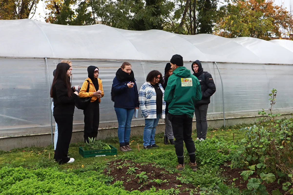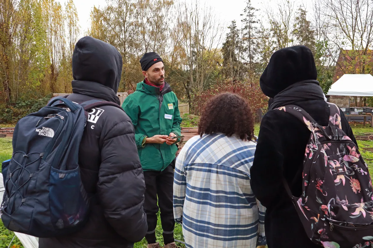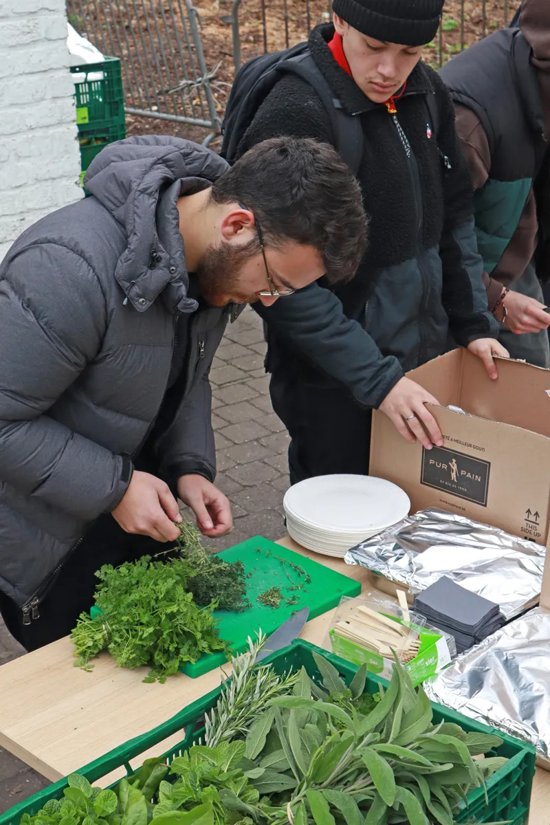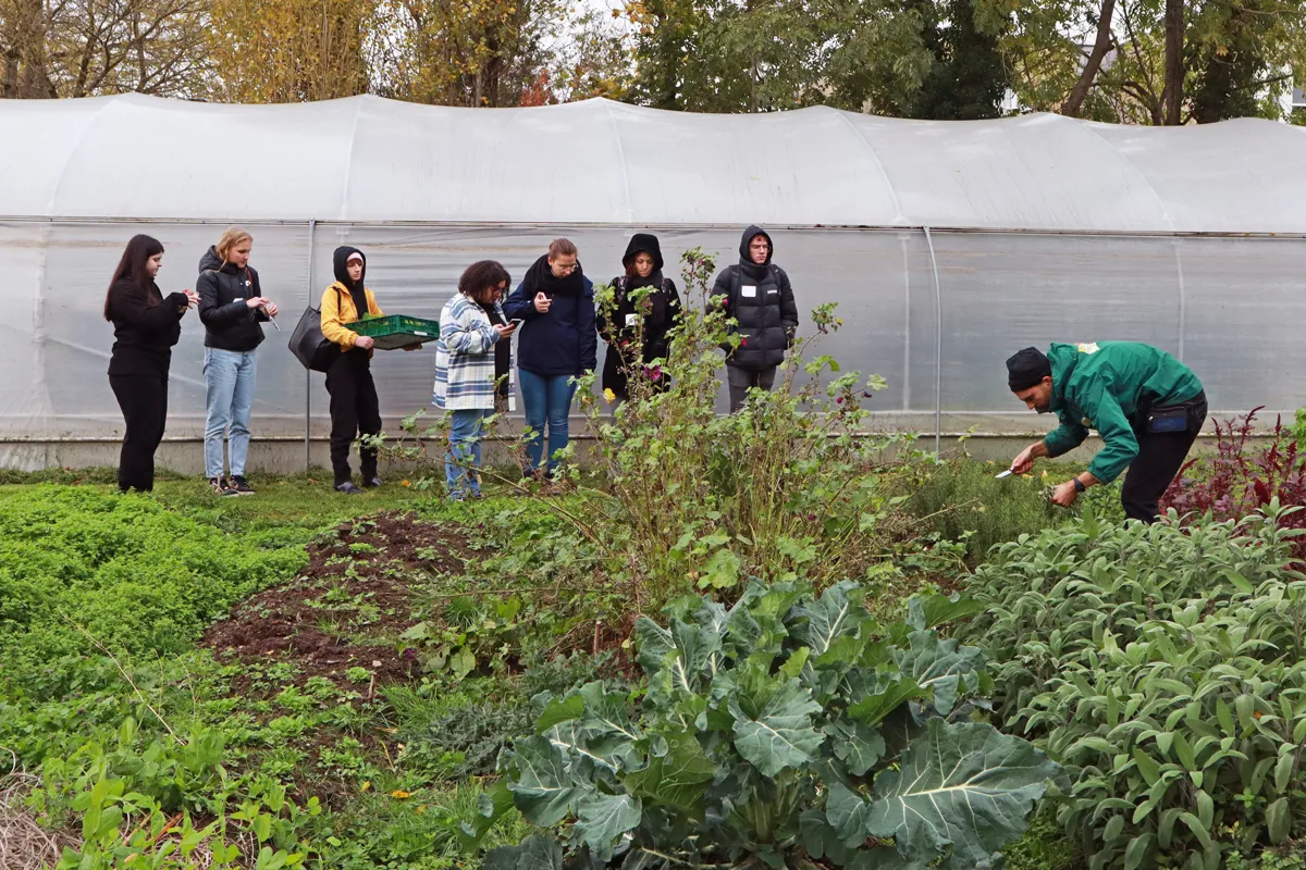À travers un focus sur l’alimentation, les étudiants de première année de la section gestion hôtelière (GH) ont découvert le projet des jardins du CERIA le 18 novembre 2022. Répartis en petits groupes, ils ont participé à plusieurs ateliers alternant entre pratique et théorie. Accompagnés par Edith Singleton, ils ont abordé le thème de l’alimentation saine et durable. Grâce à un exercice de photo-langage, chaque étudiant choisissait une ou deux images, expliquait ses choix, et ensemble, ils discutaient des bonnes et mauvaises habitudes, tant du point de vue de la santé humaine que de l’impact environnemental. Avec Antoine Morthier, les petits groupes sont passés à la pratique en participant à un atelier sur le compost. Quel est le cycle de la matière organique ? Qu’est-ce qui se recycle, et dans quelle poubelle ? Cet atelier, d’une grande importance, s’inscrit dans le cadre de la participation des GH à la récolte des déchets menée par les jardins sur le campus du CERIA pour alimenter le compost. Les étudiants ont également préparé et enrichi les sols pour l’hiver, période où les jardins du CERIA mettent la terre au repos. Les étudiants ont aussi découvert, grâce à Stéphane Passelecq, les herbes aromatiques cultivées dans le potager : des herbes connues, méconnues ou oubliées. Ils ont pu notamment cueillir de l’oseille, du thym, du romarin, de la coriandre, de la sauge, de la livèche (un céleri perpétuel) et trois variétés de menthe (marocaine, poivrée et fraise). Cet atelier a également permis de rappeler les grandes familles de légumes classées selon leur partie comestible et de revoir quels légumes sont de saison sous notre latitude belge. Autre volet de cette journée didactique : l’apiculture. Eh oui, les jardins du CERIA s’occupent également de ruches ! Avec Claire Gillet, de l’asbl « Le nez dehors », les GH ont découvert les produits de la ruche (miels d’été, de printemps, etc.), appris les différences entre les abeilles domestiques (présentes au rucher et productrices de miel) et les abeilles sauvages (essentielles pour la pollinisation, cruciale pour notre survie). Les étudiants ont également appris les différents rôles au sein d’une ruche (reine, ouvrière, ventileuse, faux bourdon, etc.) et les activités des abeilles selon les saisons. Autre volet de cette journée didactique : l’apiculture. Eh oui, les jardins du CERIA s’occupent également de ruches ! Avec Claire Gillet, de l’asbl « Le nez dehors », les GH ont découvert les produits de la ruche (miels d’été, de printemps, etc.), appris les différences entre les abeilles domestiques (présentes au rucher et productrices de miel) et les abeilles sauvages (essentielles pour la pollinisation, cruciale pour notre survie). Les étudiants ont également appris les différents rôles au sein d’une ruche (reine, ouvrière, ventileuse, faux bourdon, etc.) et les activités des abeilles selon les saisons.
